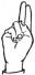 На ћирилици написано ОГЊАНА МИЛОШЕВАЦ састоји се из 15 слова [?]. Исписано ћириличном једноручном азбуком за глувонеме: